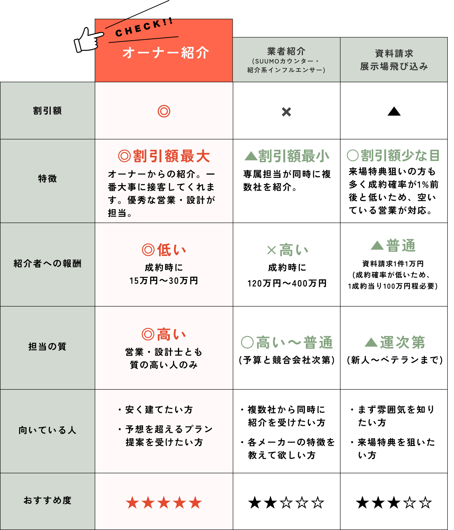 紹介割引額+紹介特典(安くお得に建てたい方はオーナー紹介一択)